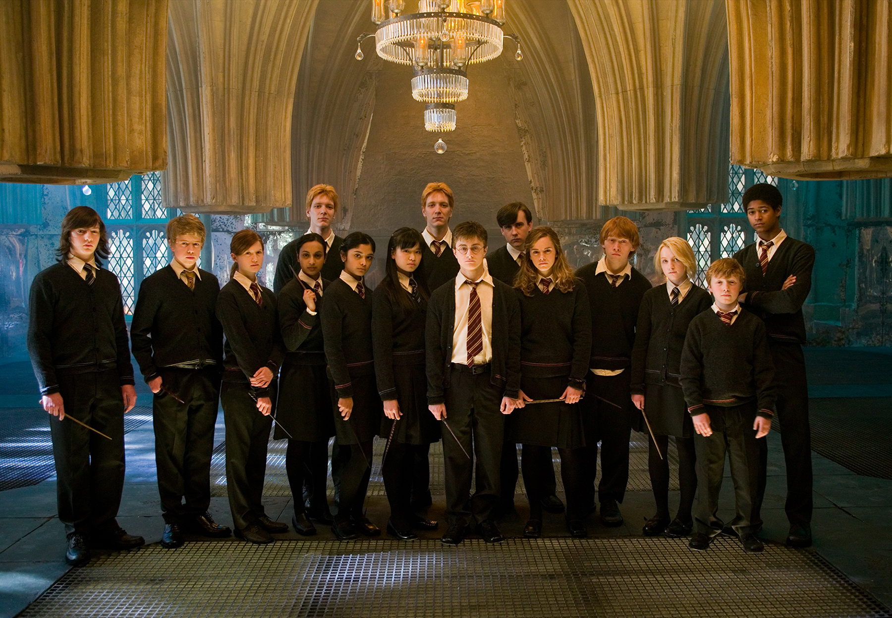 Also known as the D.A., Dumbledore's Army was an organisation created by Harry Potter, Hermione Granger and Ron Weasley in their fifth year at Hogwarts, intended to teach other students at the school how to defend themselves against the Dark Arts. This secret society became necessary when it was clear that Dolores Umbridge, the fifth year Defence Against the Dark Arts teacher, would not properly teach them anything. The group met in the Room of Requirement and used enchanted coins to communicate with its members. Harry taught the group some of the basics of duelling, such as the Disarming Charm and Impediment Jinx, as well as advanced magic such as the Patronus Charm.